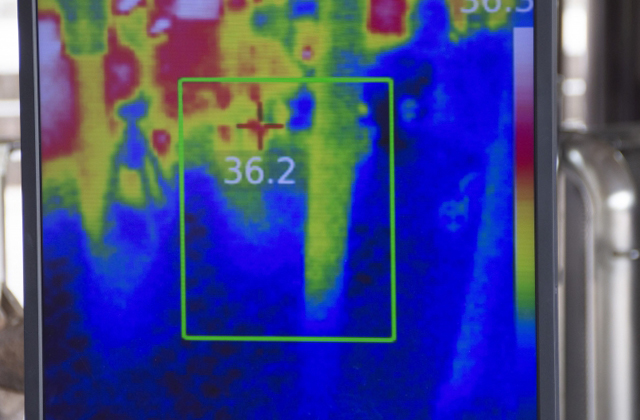 目視だけでなく専用のサーモカメラを使用し、温度感知をもとに異常の確認をしています。